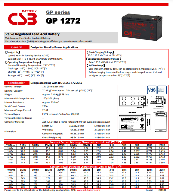 免維護密封鉛酸電池。 吸收式玻璃氈 (AGM) 技術可實現高達 99% 的高效能氣體重組。